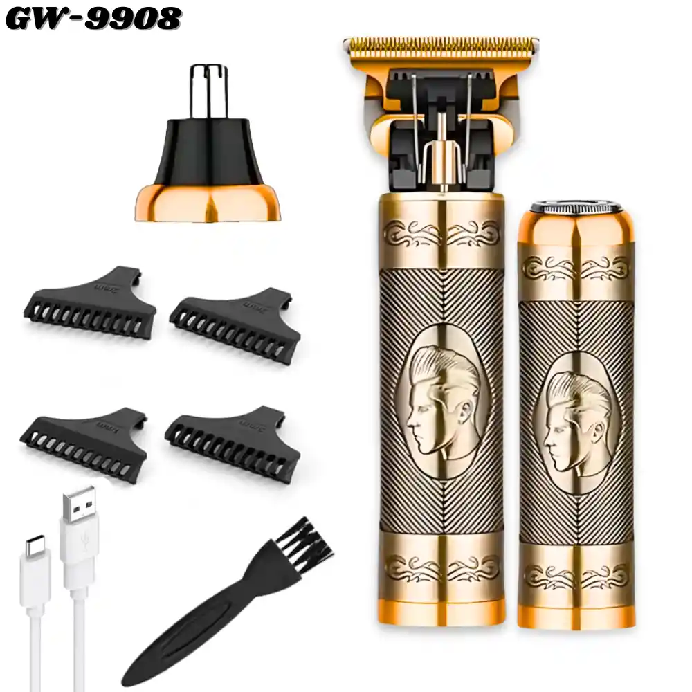 Combo Maquina De Motilar Patillera Afeitadora Rasuradora 3 En 1 Recargable GW-9908 Juego de mini recortadora 3 en 1, diseñado para brindarte comodidad, eficiencia y resultados profesionales donde quiera que estés. Este versátil kit incluye una mini cortadora de pelo, una mini afeitadora, y un cabezal para recorte de nariz, todo en un diseño compacto, moderno y fácil de transportar. Perfecto para el hogar, la oficina o tus viajes, este kit es ideal para quienes valoran el cuidado personal sin complicaciones. Características: - 3 en 1: Incluye mini recortadora de cabello, mini afeitadora y recortadora de vello nasal. - Diseño compacto y ligero: Ideal para llevar en tu maleta. - Operación silenciosa: perfecta para usar en casa sin causar molestias. - Batería de alta duración: Hasta 100 minutos de uso continuo Nota: Las imágenes publicadas son de referencia, el producto real puede presentar ligeras variaciones en su diseño y tonalidad de color.