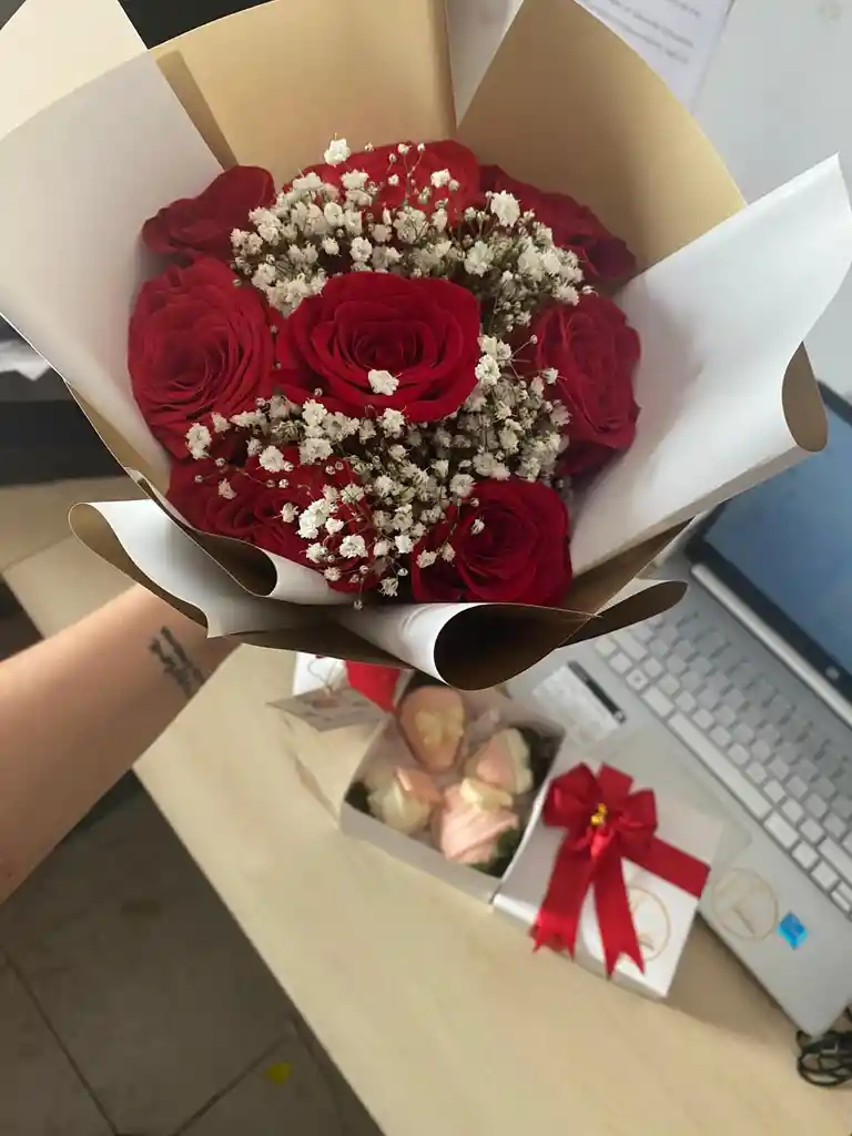 Nota: color de la rosa y papel de envoltura disponible por la tienda