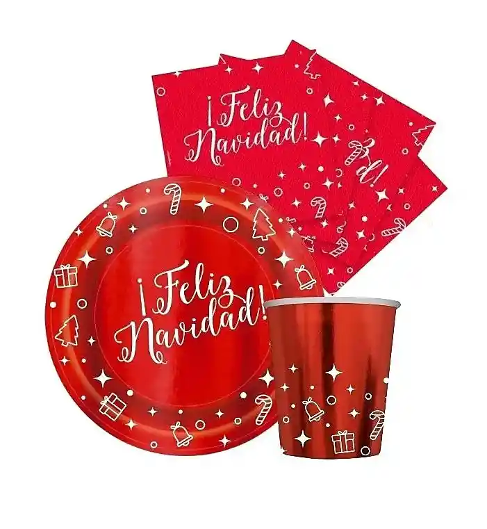 Se envia un Juego de Plato Vaso y Servilleta Motivo Navidad Roja Sempertex Incluye: 1 paquete de platos x 8 unidades de 7 pulgadas - 18 cm 1 paquete de vasos x 8 unidades 9 onzas 1 paquete x 16 servilletas