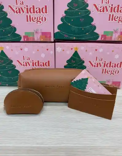 Incluye: 1-Cosmetiquera 2- Monedero 3-Tarjetero 4-Caja+tarjeta