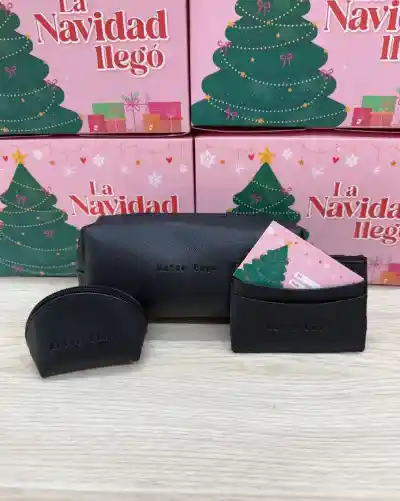 Incluye: 1-Cosmetiquera 2- Monedero 3-Tarjetero 4-Caja+tarjeta