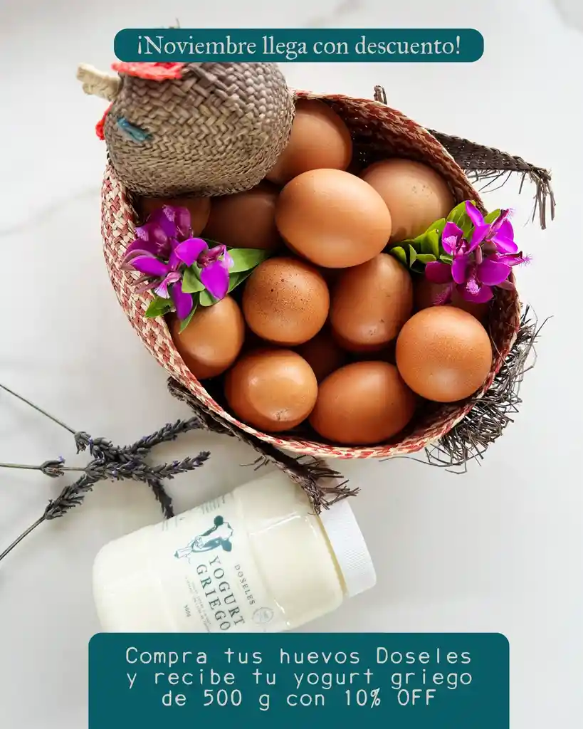 Compra tus huevos DOSELES y recibe tu Yogurt griego de 500 g con 10% OFF