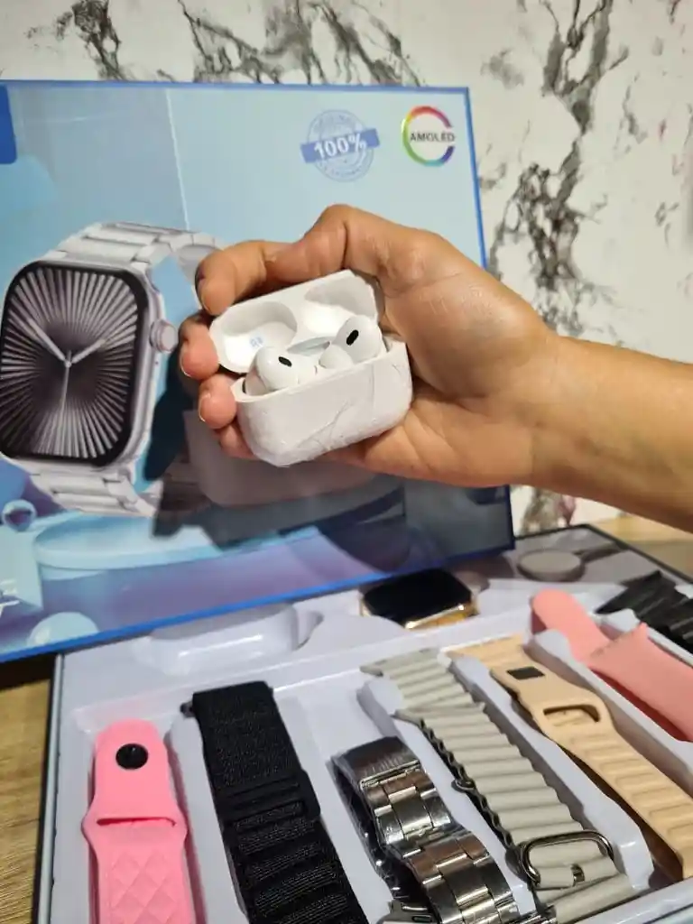 Combo reloj, audífonos y 7 correas para mujer