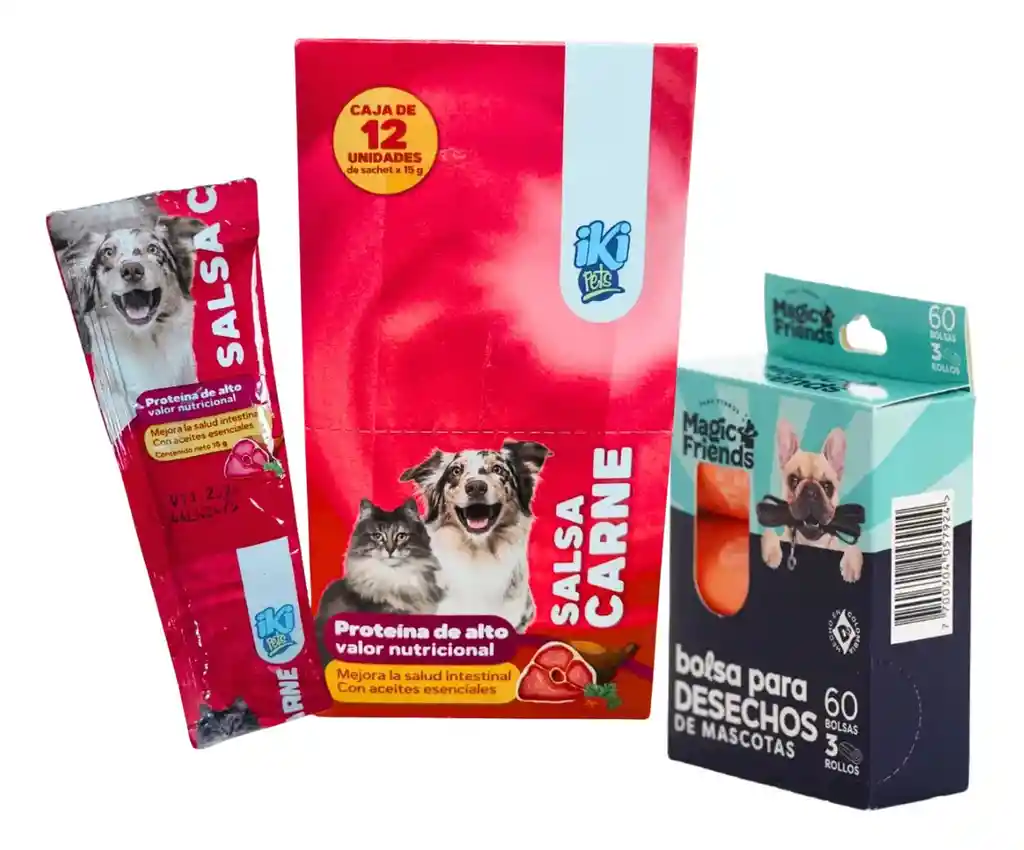 Combo Salsa Carne para Perros y Gatos + Bolsas de Desechos Brindá nutrición, sabor y limpieza diaria a tus mascotas con este práctico combo de salsa sabor carne para perros y gatos + bolsas para desechos. Ideal para complementar la alimentación y facilitar el cuidado durante los paseos, manteniendo un entorno higiénico y ordenado. Beneficios principales Salsa nutritiva que aporta mejor sabor y apetito en la comida. Apta para perros y gatos de distintas edades. Bolsas resistentes que permiten recoger desechos de forma rápida y segura. Perfecto para el cuidado diario en casa o durante paseos. Solución práctica que combina alimentación y limpieza en un solo combo.
