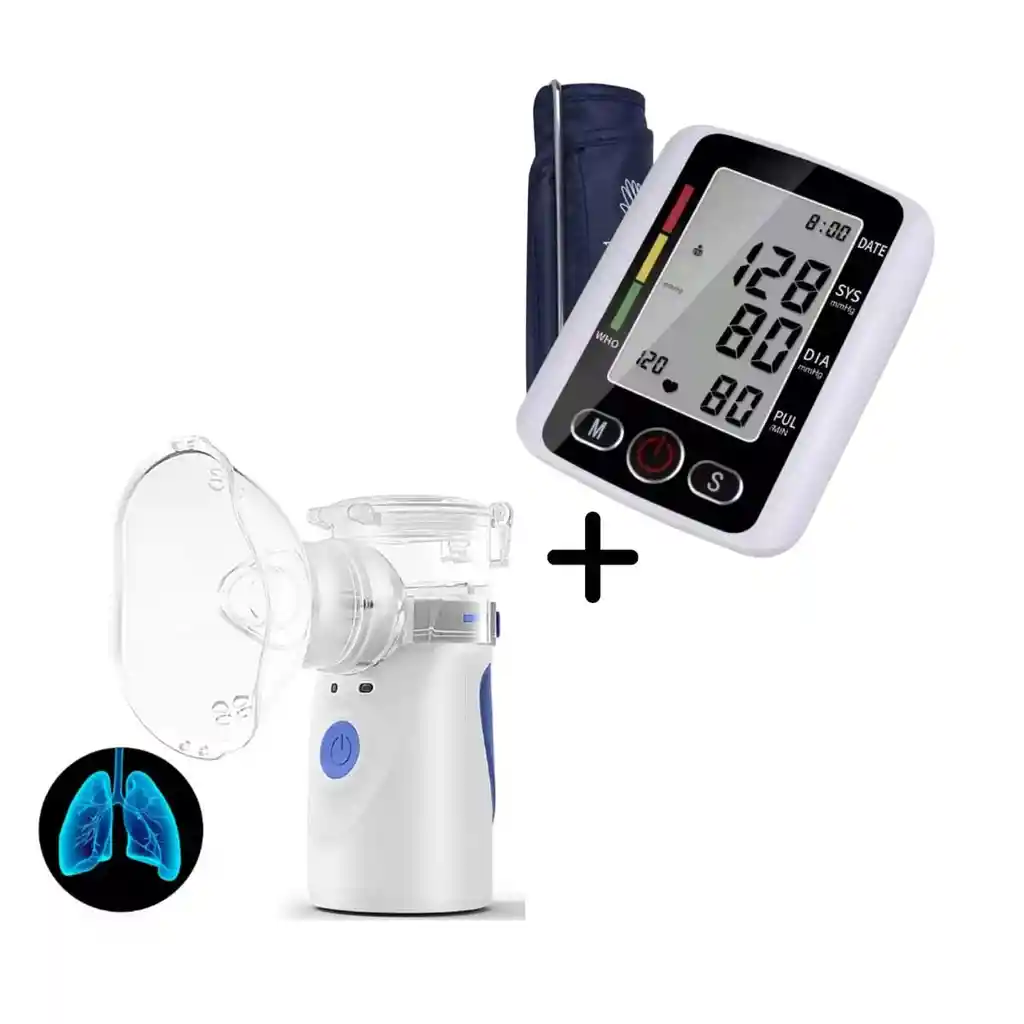 Combo Salud Nebulizador + Tensiómetro Este combo es ideal para el cuidado de la salud en casa, permitiéndote monitorear tu presión arterial y recibir tratamientos respiratorios de manera rápida y eficiente. Incluye: ✔ Nebulizador: Dispositivo compacto y eficiente que convierte los medicamentos líquidos en vapor para facilitar su inhalación. Ideal para tratar enfermedades respiratorias como asma, bronquitis y alergias. Tensiómetro digital: Monitorea con precisión tu presión arterial y frecuencia cardíaca en segundos. Cuenta con pantalla de fácil lectura y diseño automático para mayor comodidad. Beneficios: •Ideal para el hogar, permite monitoreo constante y tratamientos respiratorios efectivos. •Fácil de usar, con funcionamiento automático y mediciones precisas. •Compacto y portátil, ideal para llevar a cualquier lugar. •Tecnología avanzada, garantizando precisión y comodidad en su uso. Este combo es la solución perfecta para quienes buscan un monitoreo de salud completo y accesible