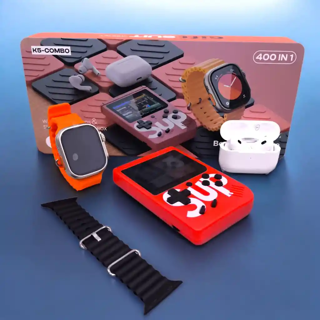 Combo Smart Watch K5, incluye 1 banda intercambiable, una consola que incluye varios juegos, mantente conectado con tus notificaciones y escucha tu música favorita con los AirPods que incluye🤩✨