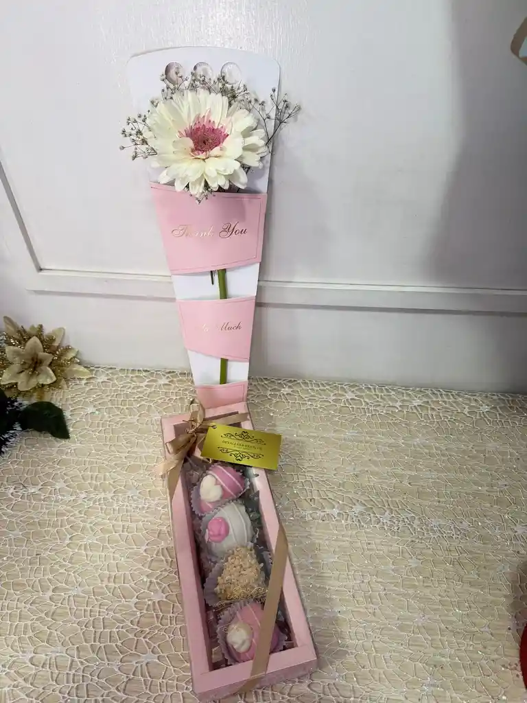 Combo Solitario de encanto con gerbera y Caja De Chocolate Relleno con Fresas Con Chocolate Color de caja y rosa de acuerdo a disponibilidad