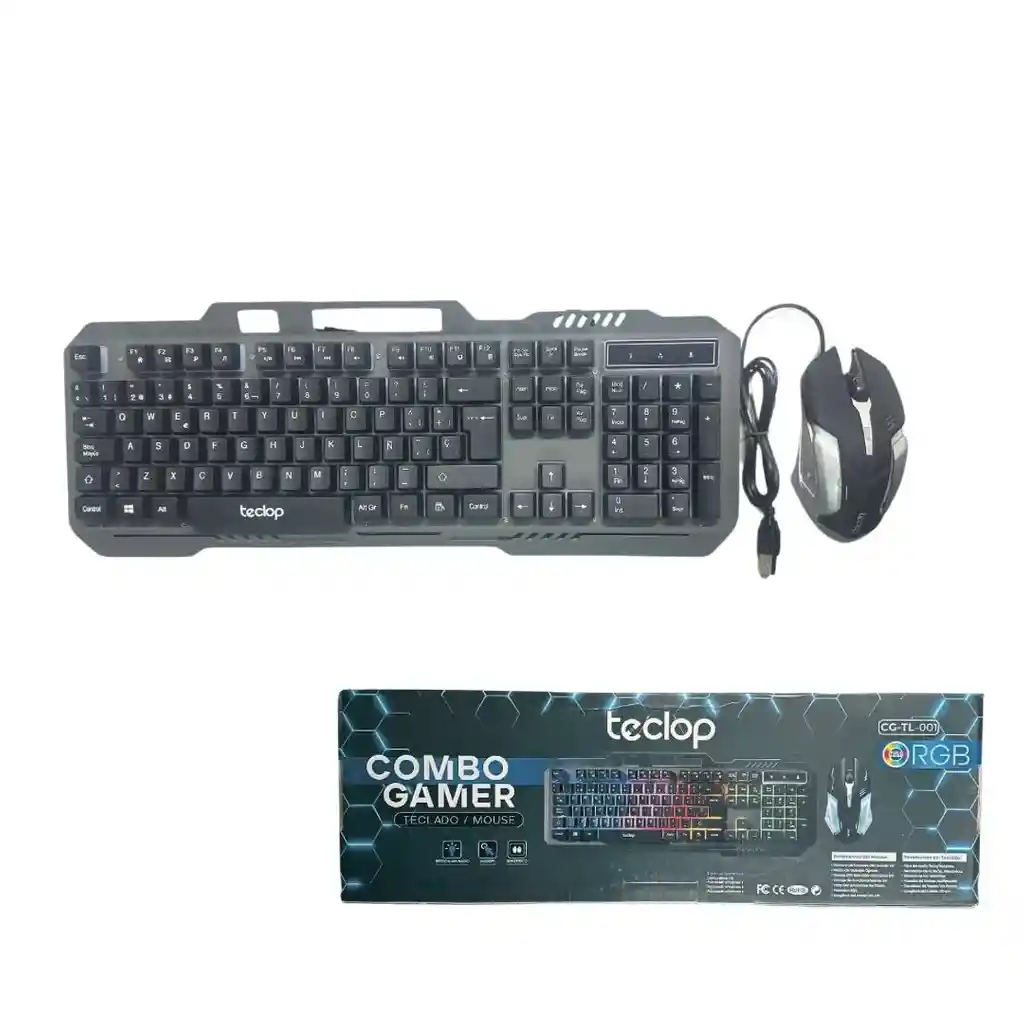 Incluye un teclado y un ratón alámbricos. Cuenta con iluminación LED RGB de fondo. Diseño resistente y ergonómico. Conexión USB. Referencia del producto: CG-TL-001. Tipo: Teclado de tamaño completo con cable. Retroiluminación: LED tipo arcoíris (RGB). Diseño: Robusto y con teclas de membrana. Mouse: Tipo de sensor: Óptico. Sensibilidad: Alta sensibilidad, con resolución de hasta 1.600 dpi. Diseño: Ergonómico. General: Conectividad: Alámbrico. Modelo: CG-TL-001.