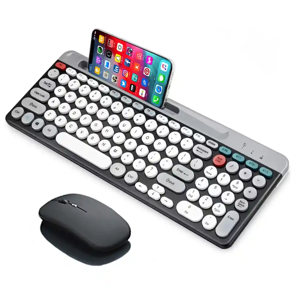 Teclado y Ratón Inalámbrico Multidispositivo 2.4G + Bluetooth 5.0/3.0 Este combo de teclado y ratón inalámbrico multidispositivo está diseñado para ofrecer comodidad, conectividad versátil y un entorno de trabajo silencioso. Permite conectar hasta 3 dispositivos simultáneamente mediante 2.4G, Bluetooth 5.0 y Bluetooth 3.0, facilitando el cambio entre equipos sin complicaciones. Ideal para oficina, estudio o uso en casa, combina teclas silenciosas, diseño ergonómico y amplia compatibilidad, brindando una experiencia de uso cómoda y eficiente. Especificaciones Técnicas Tipo de conexión: • Inalámbrico 2.4G • Bluetooth 5.0 • Bluetooth 3.0 Multidispositivo: • Conexión hasta 3 dispositivos Receptor: • USB 2.4G plug-and-play (no requiere drivers) Nivel de ruido: • Teclas silenciosas de perfil bajo • Mouse silencioso Compatibilidad: • Windows 7 o superior • Mac OS • iOS • Android • Dispositivos con puerto USB Diseño del teclado: • Perfil bajo • Soporte integrado para celular o tablet • Pies de inclinación para mejor postura de muñeca Dimensiones Aproximadas Teclado: • Ancho: 43 cm • Profundidad: 12–13 cm • Grosor: 2–2.5 cm Mouse: • Largo: 11 cm • Ancho: 6 cm • Alto: 3 cm Beneficios del Producto • Conexión a 3 dispositivos al mismo tiempo • Cambio rápido entre equipos • Escritura silenciosa y cómoda • Ideal para oficina y estudio • Diseño ergonómico • Soporte para celular o tablet integrado • Instalación rápida plug-and-play • Amplia compatibilidad de sistemas Contenido del Paquete • 1 Teclado inalámbrico • 1 Mouse inalámbrico • 1 Receptor USB 2.4G Garantía Este producto cuenta con 30 días de garantía por defectos de fabricación. Política de Retracto Aplica el derecho de retracto dentro de los 5 días hábiles posteriores a la entrega. El producto debe devolverse sin uso, en perfecto estado y con su empaque original intacto. Nota Importante • Mantener el equipo seco y alejado de líquidos, humedad o condensación. • No usar con manos mojadas. • No almacenar en lugares muy calientes, fríos o polvorientos. • Evitar golpes o caídas. • Para garantía o retracto se deben enviar fotos y/o videos que evidencien el estado del producto. • La garantía no cubre daños por mal uso, golpes o humedad. • Si presenta fallas: verificar batería, conexión, configuración y reiniciar el dispositivo.