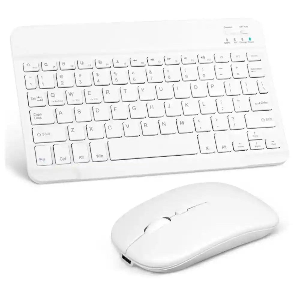 Combo Teclado Y Mouse Recargable Inalambrico Bluetooth Blanco