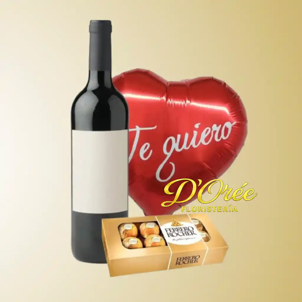 La sutileza hecha detalle... Este maravilloso regalo contiene: - 1 Globo metálico - Te Quiero Mucho - 1 Caja de chocolates Ferrero Rocher x 8 unds - 1 Botella de Vino Gato Negro