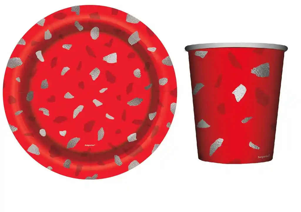 🥳 Juego de Vasos y Platos De Carton Color Terrazo Rojo Marca Sempertex Incluye: 8 Vasos 9 onz - 8 Platos 7" Es un elemento indispensable para todas sus ocasiones pues le permitirá servir torta y gaseosas y otros pasabocas conservando los colores de su celebración.