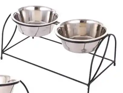 Comedero dloble con soporte en acero medidas 15x15cm alto 13cm