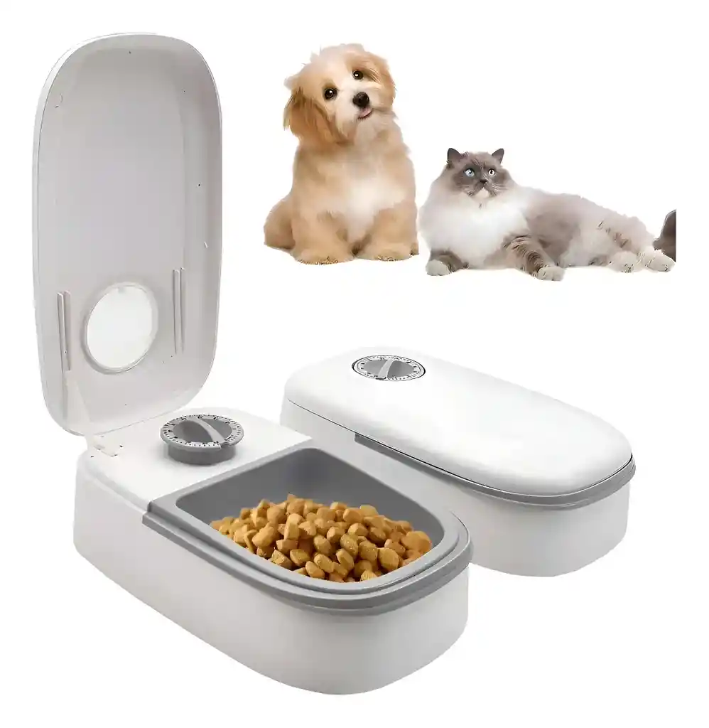 Este comedero automático con temporizador es ideal para gatos y perros pequeños a medianos, permitiendo programar hasta dos comidas en porciones con un retraso de hasta 48 horas. Su diseño silencioso evita ruidos molestos, y su funcionamiento con pilas AA lo hace fácil de usar sin necesidad de cables. Cuenta con una bandeja extraíble sin BPA apta para lavavajillas, asegurando una limpieza sencilla y segura. Además, incorpora un espacio para colocar bolsas de hielo, manteniendo la comida fresca por más tiempo. Fabricado en plástico ABS resistente, es duradero y práctico para establecer hábitos alimenticios regulares en tu mascota. Ficha Técnica: Dimensiones: 25 cm x 27.5 cm x 7 cm Material: Plastico ABS Funcionamiento : 1 pila AA