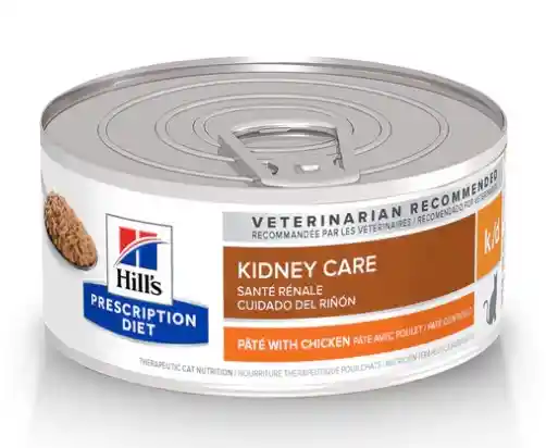 Hill’s Prescription Diet k/d elaborado con bajo contenido de fósforo, niveles moderados de proteína y L-carnitina para mantener la condición corporal
