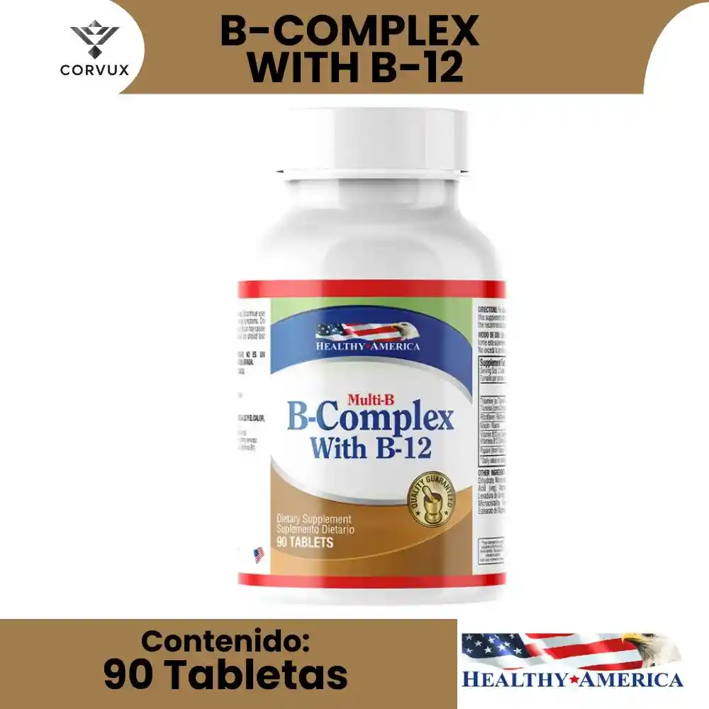 Complejo B + Vitamina B12 | Multi-b B-complex Con B-12 Healthy America – 90 Tabletas | Energía Y Vitalidad Diaria 💊