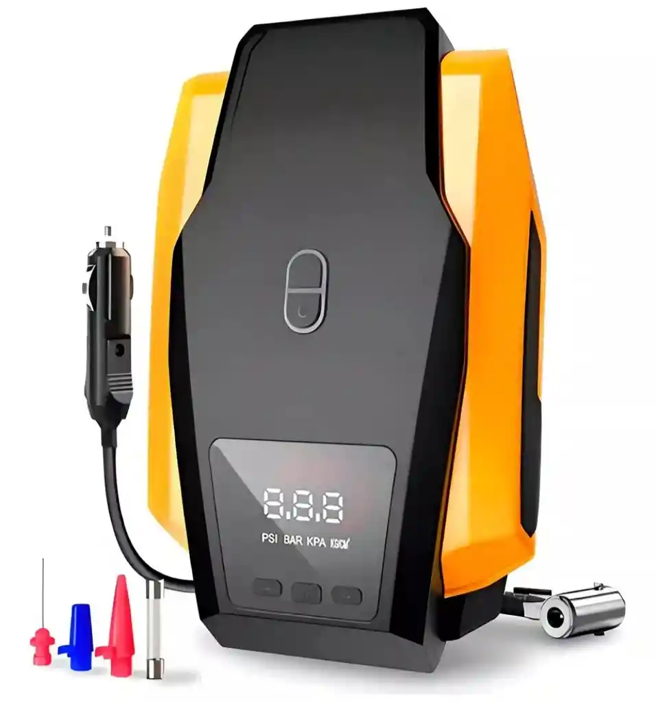 Este moderno compresor de aire es fácil de usar, con una presión de neumáticos preestablecida precisa y se puede inflar. Cualquiera puede hacerlo de forma rápida y sencilla. Utiliza un cómodo cabezal de inflado, que se puede configurar inmediatamente presionando el botón, sin necesidad de ponérselo, y el cuerpo es pequeño y fácil de transportar. Esta bomba de coche compacta utiliza un diseño creativo y considerado. Es realmente cómodo para el uso diario, no solo para el automóvil, sino también perfecto para bicicletas, motocicletas, SUV de tamaño mediano, equipos deportivos como flotadores, juguetes para la piscina, baloncesto, fútbol, pelotas deportivas y otros botes inflables. Nuestro inflador de neumáticos digital tiene el exclusivo movimiento original del turbocompresor, que es más potente, menos ruidoso y más estable. Es útil en el coche en caso de baja presión de los neumáticos en la carretera. CARACTERISTICAS -De 5 a 8 minutos demora inflando el neumático -Portátil y cómodo para transportar. -Estándares de implementación: GB4706 1-2005 -Precisión de medición de presión: +-0.5PSI -Medición de presión máxima:260PSI -Voltaje de entrada: CC12V -Presión máxima: 120 -Presión barométrica máxima: 150PSI -Versión: mini -Pantalla puede modificar aumentar o disminuir la presión. -Incluye: 4 válvulas para diferentes ingresos, pelotas, bicicletas, colchones inflables, juguetes de piscina -Pantalla LCD digital -Hecho en china -Receptáculo de cigarrillos: DC12V Cuenta con luz DIMENSIONES CAJA Largo: 25 cm Ancho: 9 cm Alto: 16 cm PRODUCTO Largo: 24 cm Ancho: 16 cm Alto: 9 cm Cable conexión enciende 250 cm Manguera de compresor: 50 cm CONTENIDO CAJA Compresor de aire 4 válvulas para diferentes ingresos. Instrucciones en ingles RECOMENDACIONES 1. NO utilice el inflador en automóviles grandes como camiones o furgonetas. 2. SIEMPRE encienda el motor del automóvil mientras el inflador esté funcionando. 3. Para uso con tomas de corriente CC (CC 12 V, 10 A). 4.NO utilice el inflador continuamente durante más de 10 minutos. Deje que la unidad se enfríe entre usos. 5. Normalmente, se necesitan aproximadamente de 5 a 8 minutos para inflar los neumáticos a la presión adecuada de 220 KPA o un poco más para neumáticos más grandes. Si la presión aumenta rápidamente a 490 KPA en aproximadamente 2 a 3 minutos, desenchufe el cable de alimentación y renueve el conector de la manguera de aire. Entonces empieza de nuevo. 6.NO deje el inflador desatendido. ¡NO INFLAR DEMASIADO! 7. SIEMPRE tire hacia arriba de la llave del conector de la manguera de aire después de su uso. 8. Asegúrese de que el receptáculo del encendedor esté funcionando. 9. Mantenga el inflador fuera del alcance de los niños y guárdelo en un lugar seco. 10.Evite caídas o inmersión en arena.