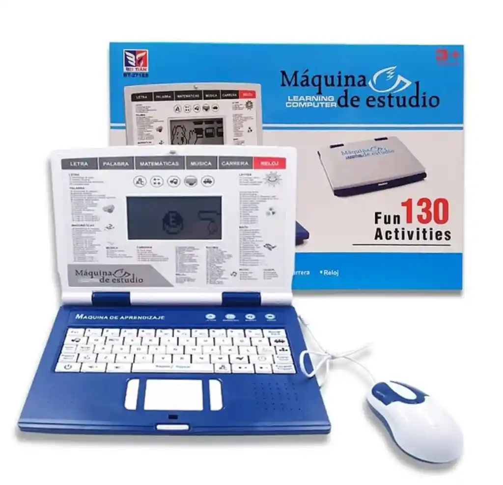 Maquina de estudio práctica y divertida para que los pequeños de la casa tenga una manera de aprender más emocionante. Incluye diversas actividades de matemática como reconocer cifras, resta, suma, multiplicación, también incluye distintas actividades sobre idiomas como reconocer las letras, ortografía, sinónimos, antónimos y para ponerle emoción al aprendizaje también contiene música y juegos. Para reforzar la enseñanza viene para dos idiomas, español e ingles. Funciona con corriente y con pilas, 3 AA (pilas no incluidas) * Disponibles con 130 actividades * 2 idiomas inglés y español * letras, palabras, matemáticas, música, carrera, reloj * Computador didáctico portátil de pilas y de corriente * Tiene juegos así como cursos de inglés incorporados y de cultura general * Incluye mouse y adaptador a corriente