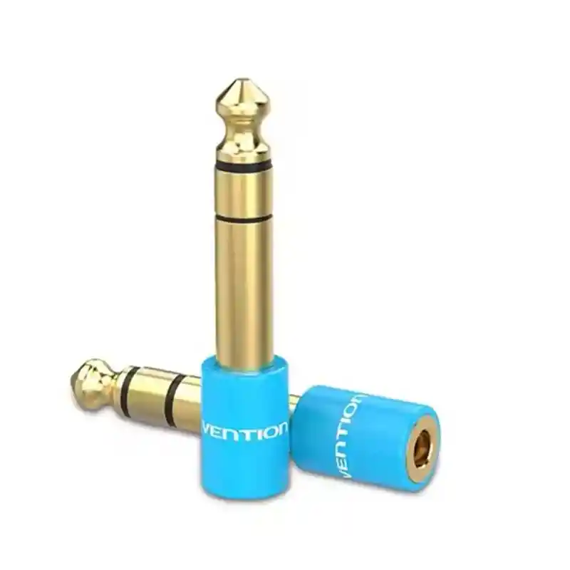 Descripción: El adaptador de audio Vention 6.35mm a 3.5mm es la herramienta ideal para quienes buscan conexiones rápidas, estables y sin pérdida de calidad en sus equipos de sonido. Su diseño convierte un conector Jack 6.35mm macho en una entrada 3.5mm hembra, permitiendo usar auriculares, micrófonos, altavoces o cualquier dispositivo de audio con guitarras, amplificadores, teclados, mezcladores y equipos profesionales. Fabricado en cobre de alta pureza con recubrimiento de oro, garantiza una máxima conductividad y una transmisión de señal clara, libre de ruido e interferencias. El conector cuenta con un ajuste firme y seguro, evitando desconexiones accidentales y asegurando una experiencia de sonido confiable. Su diseño compacto, ligero y portátil lo hace fácil de llevar a cualquier lugar, ideal tanto para uso doméstico como en estudios de grabación, conciertos en vivo, presentaciones, ensayos musicales y producción de audio profesional. Además, su carcasa resistente al desgaste prolonga su vida útil incluso en un uso intensivo.. Especificaciones: Tipo de conector: Jack 6.35mm macho a 3.5mm hembra Color: Oro (aunque tiene un diseño en azul y dorado) Audio Estéreo: sonido nítido, sin interferencias ni pérdidas Portátil y práctico: tamaño compacto para llevarlo siempre contigo. Compatibilidad: guitarras, micrófonos, altavoces, auriculares, teclados, amplificadores y equipos de audio. Contenido del paquete: 2 x Adaptador de audio Vention 3.5 mm (macho) a 6.5 mm (hembra).