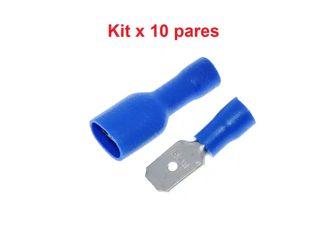 CONECTORES FDFD2-250 MDD2-250 AZUL Material del conector: cobre Color azul Ancho: 6,8 mm Espesor: 0,8 mm Tipo de terminal: hembra / macho Sección transversal del cable: 1,5 -2,5 mm2 16-14AWG Montaje: crimpado, sobre cable LA COMPRA INCLUYE: 10X CONECTORES FDFD2-250 AZUL 10X CONECTORES MDD2-250 AZUL