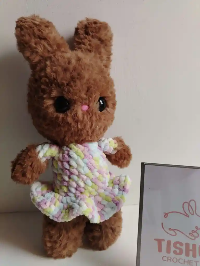 CONEJA TERMINADA TEJIDA EN CROCHET CON LANA PELUDA.