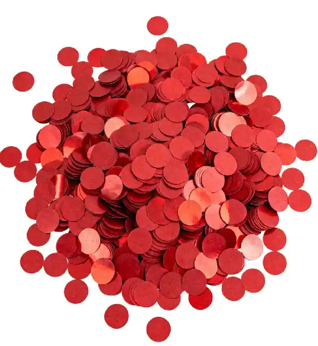 Confeti metálico redondo, ideal para adornar globos transparentes de PVC, asi como para rellenar todo tipo de globos y decoración en general.
