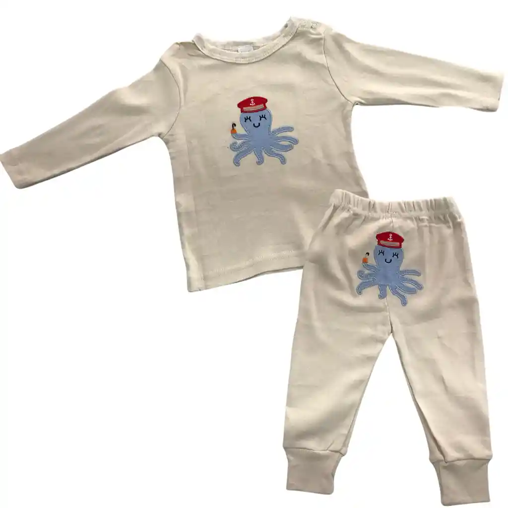 Conjunto Bebé 2 Piezas Beige Bordado Pulpo Marino 3 A 6 Meses