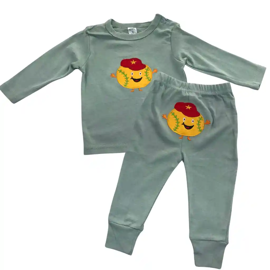 Conjunto para bebé de 3 a 6 meses, compuesto por camiseta de manga larga y pantalón a juego, confeccionado en tela suave y cómoda, ideal para la piel delicada del bebé. Su diseño en tono verde con bordado infantil alegre le da un estilo divertido, tierno y llamativo. La camiseta incluye broches en el hombro para facilitar el vestir y el pantalón cuenta con pretina elástica que brinda comodidad y libertad de movimiento. Perfecto para uso diario, descanso o salidas casuales.