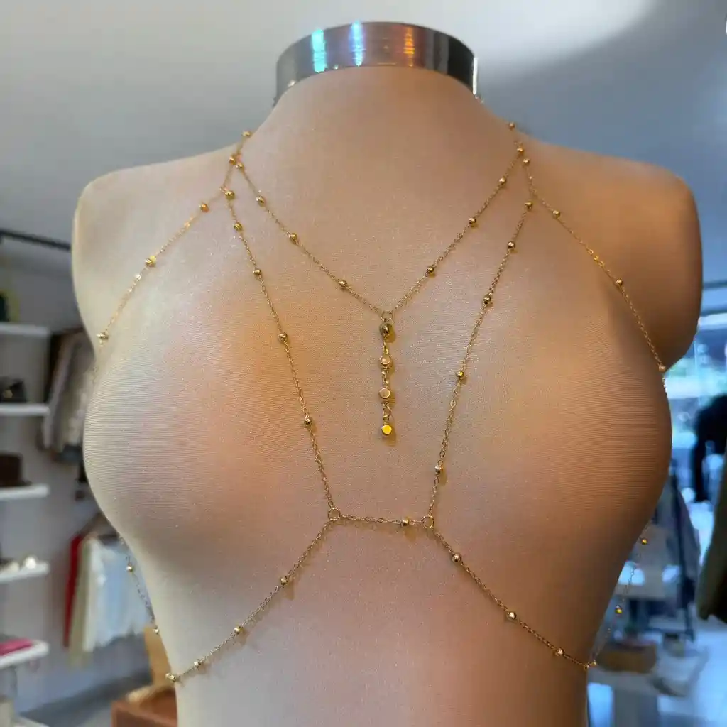 Conjunto collar tipo Bra dorado Balines / Bodychain para cuerpo / accesorio para cuerpo