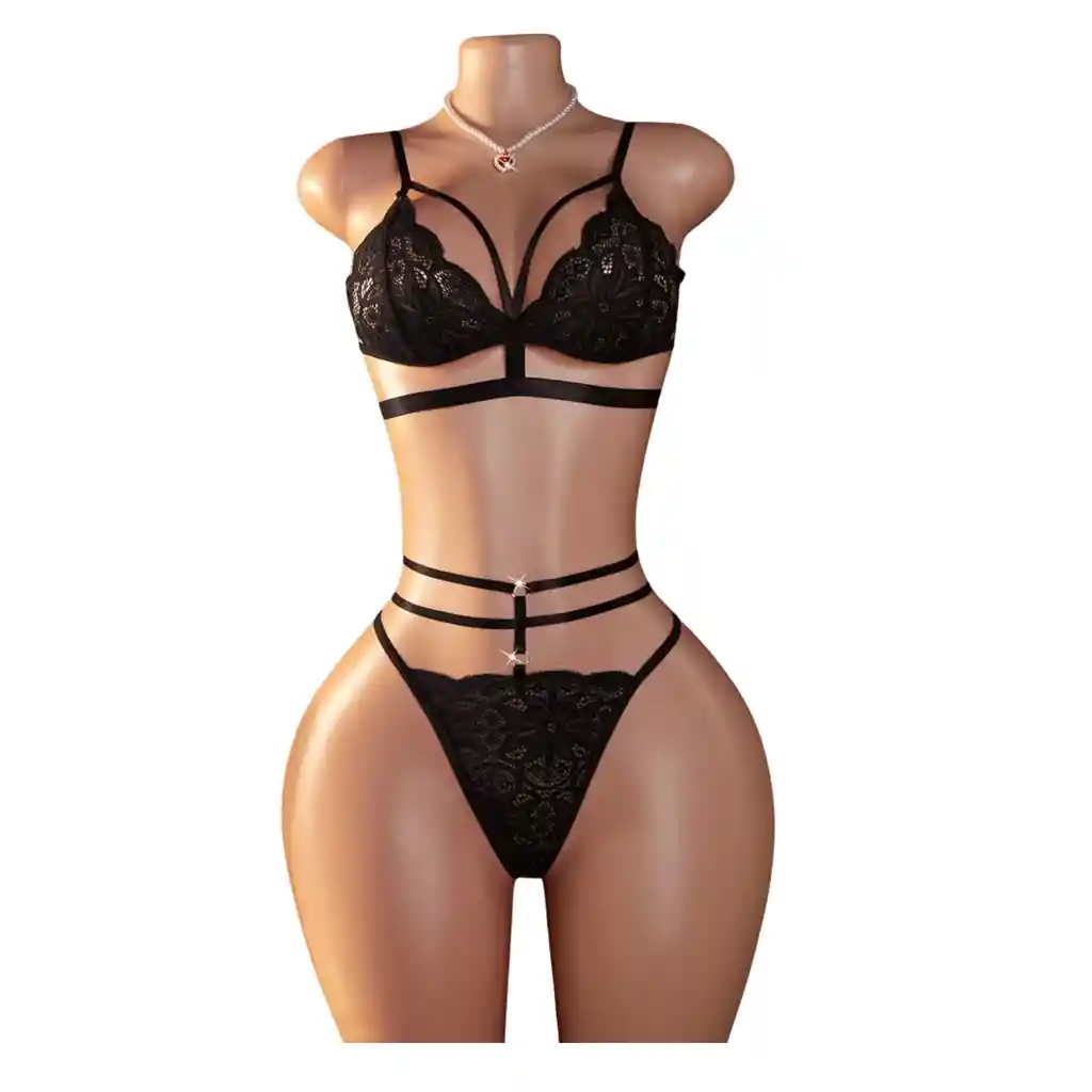 🖤 Set de Lencería Negra con Encaje y Tiras Decorativas 🖤 Talla: S Este conjunto es pura actitud: sensual, elegante y con un diseño que roba suspiros. La combinación de encaje floral y tiras estratégicas crea un efecto visual irresistible. ✨ Detalles que enamoran: Bra con múltiples tiras finas y encaje delicado 💫 Panty a juego con diseño envolvente y tiras decorativas en la cintura Encaje suave que se adapta al cuerpo con comodidad Ideal para ocasiones especiales o para sentirte poderosa cualquier día Un look que mezcla romanticismo y audacia. ¡Perfecto para elevar tu colección íntima con estilo y personalidad! 💋