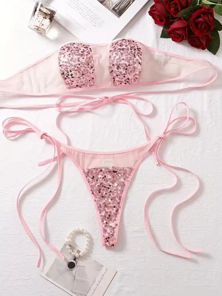 Conjunto De Lencería Sexy Bordada De 2 Piezas