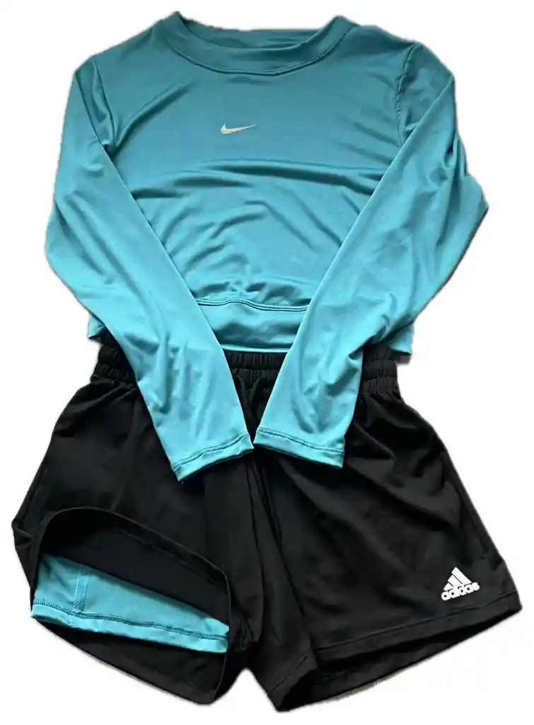 Conjunto deportivo dama, pantaloneta con licra talla LXL y buzo talla única.