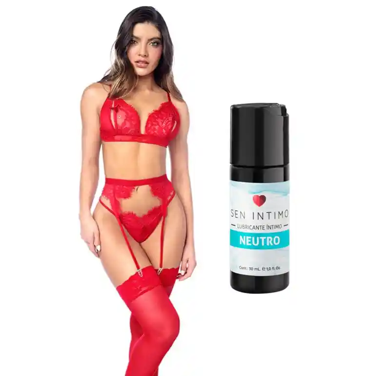 Set De Tres Piezas MAPALE Gratis Lubricante Sen 30ml Contiene: - Brasiere - Panty con abertura - Liguero Descripcion: - Talla: S/M - Color: Rojo - Material: Poliester y Elastano Set de tres piezas en encaje rojo con liguero. Este sensual conjunto combina delicadeza y provocación en cada detalle. Incluye un top en encaje con tirantes ajustables que brindan comodidad y soporte, acompañado de una panty a juego con transparencias que realza la silueta. El liguero integrado añade un toque irresistible, perfecto para complementar con medias y lograr un look lleno de pasión. Lavado y cuidado: Lavar a mano con agua fría y un detergente suave. Evita el uso de blanqueadores, el secado en máquina y el retorcido, ya que pueden dañar las fibras delicadas. Sécala al aire libre, preferiblemente a la sombra, y guárdala en un lugar limpio y seco para conservar su forma y suavidad.