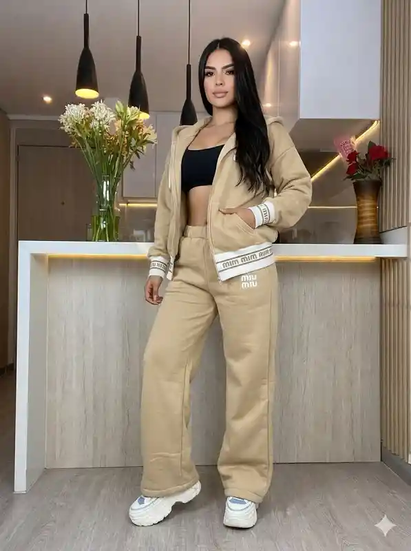 El equilibrio perfecto entre lo deportivo y lo urbano. Este conjunto de dos piezas cuenta con una chaqueta con capucha y detalles elásticos bordados que definen la silueta. Su color neutro lo hace ultra combinable, perfecto para quienes buscan un estilo cómodo, juvenil y sofisticado en una sola prenda.
