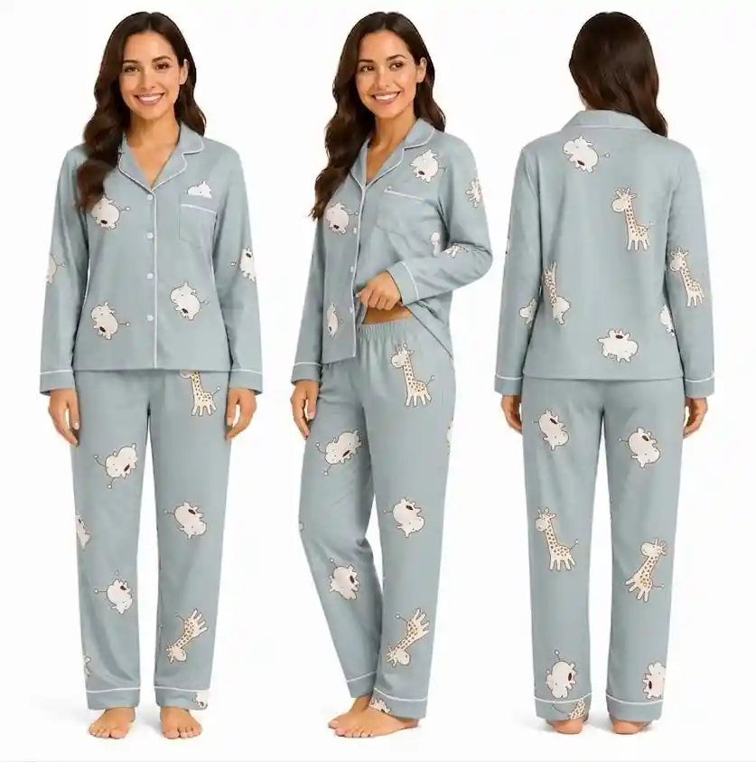 Conjunto Pijamas Blusa Camisera Y Pantalón Talla L