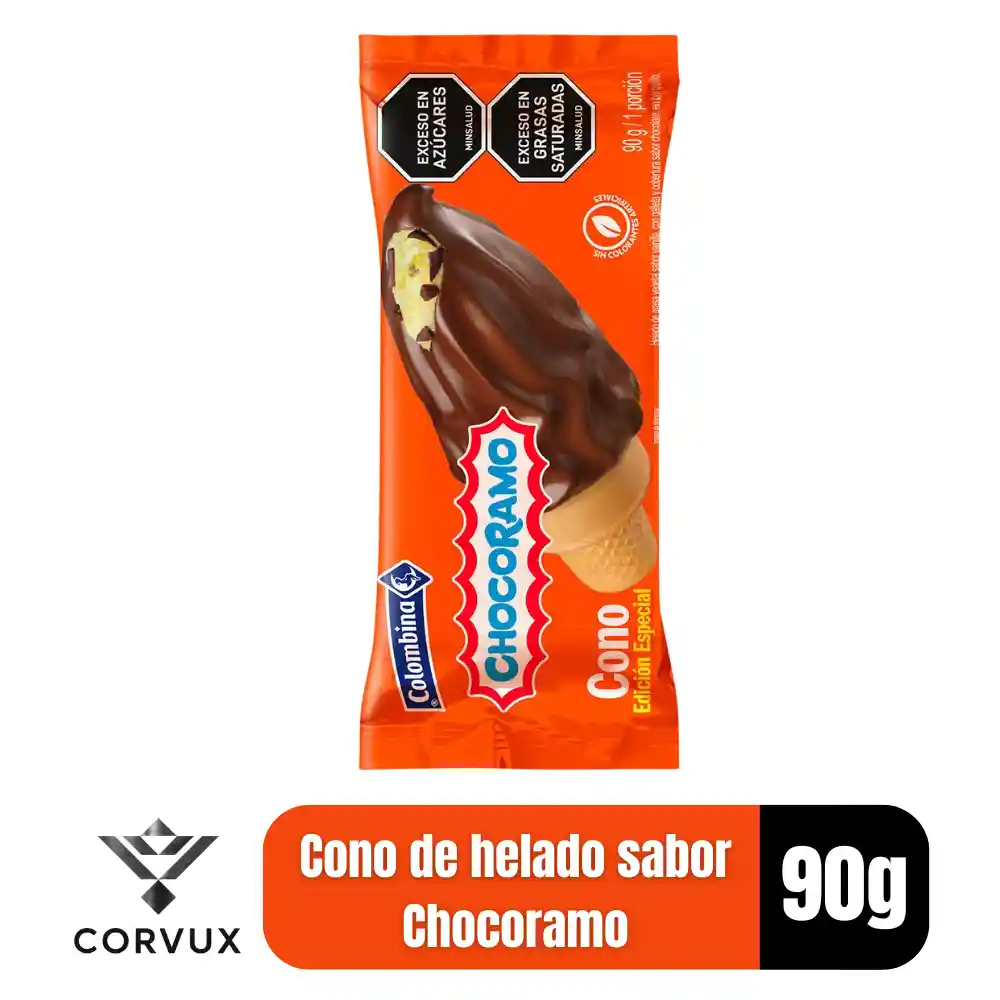 Cono de helado sabor Chocoramo con cobertura sabor chocolate