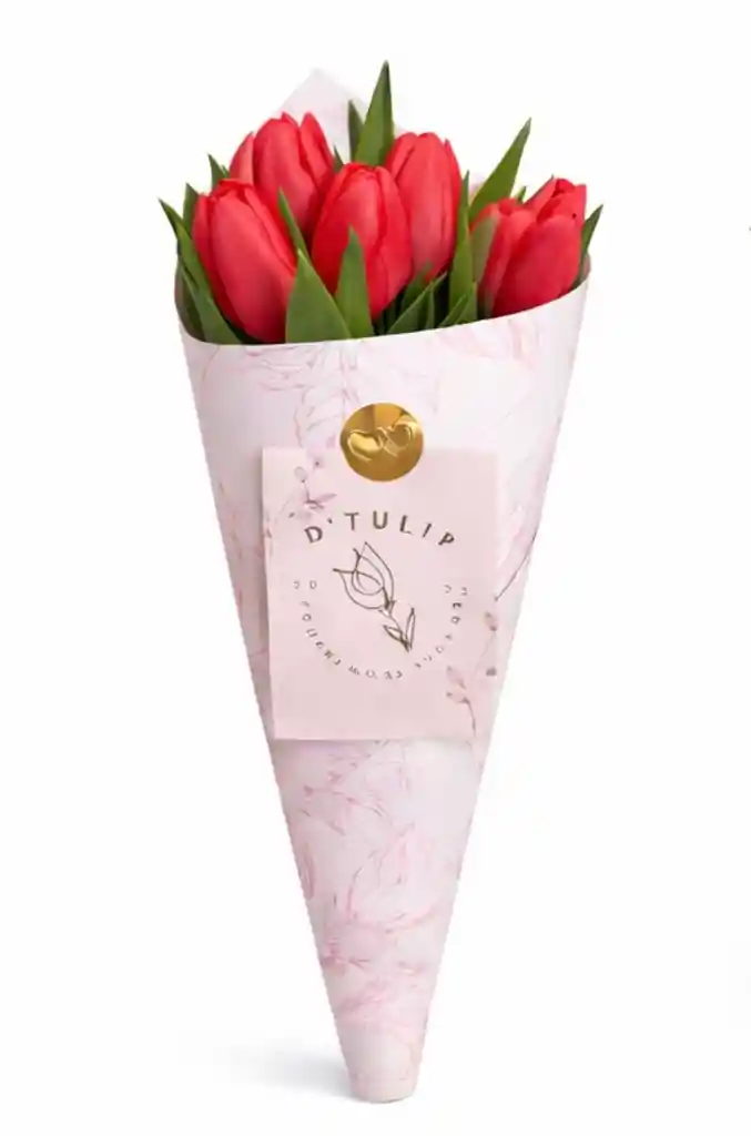 Cono de 10 tulipanes- 1 tono   Con este arreglo estás dando un regalo único, fuera de lo tradicional, de muy buen gusto. Incluye Tarjeta postal para mensaje, tarjeta con cuidados.    *NOTA: Los tulipanes son importados de Holanda, su tiempo de duración máximo es de 5-7 días de acuerdo a los cuidados que se le den, es una flor delicada. Cada arreglo es único, las fotografías son de referencia, no será exactamente igual, se mantendrá la presentación y estilo del arreglo. Los tamaños de las flores pueden variar de acuerdo al tono. Los colores se mantienen pero el tono puede variar en cada importación. Ej: morado oscuro o claro. La flor no siempre va abrir y es normal que de acuerdo a la temperatura se puedan agachar un poco (no es un defecto de la flor).
