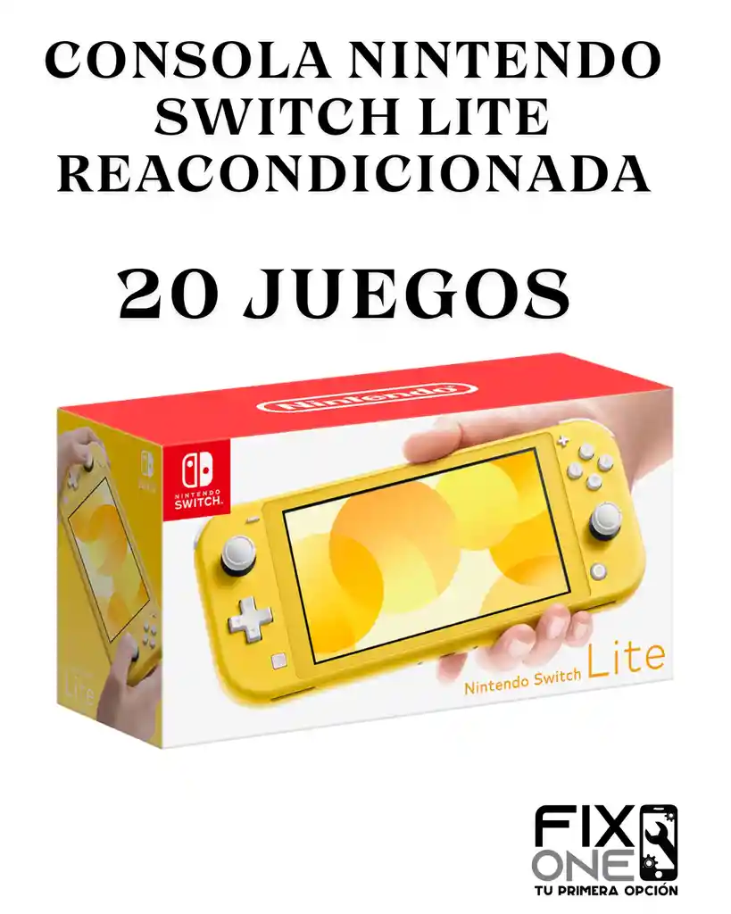 Consola Nintendo Switch Lite Reacondicionada Programada Contenido: ❇️Caja + cunas ❇️Consola Progamada + microSD de 128GB ❇️Cargador Original 🎁Vidrio protector de Obsequio ⚠️La consola esta programada incluye 20 Juegos, estos juegos unicamente se pueden jugar OFFLINE 🔅La consola acepta cartuchos de juegos originales en el modo determinado como "Modo Original" ✅Nuestros productos antes de ser enviados son probados ✅Imagen de referencia
