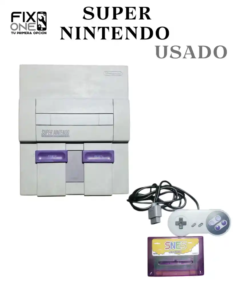 Super Nintendo Original Usado + Casete 1.000 juegos Las fotos de la publicación son del producto real, no es una foto editada ni de referencia. Tal cual como se ve en las imágenes es el producto que recibirás Consola perfectamente funcional incluye un control alambrico no original, una fuente de poder no original y un cable de vídeo no original Producto original de la marca Nintendo USADO ✅Nuestros productos antes de ser enviados son probados ♻️PRODUCTO USADO ❎Sin Caja Somos tienda Física Fix One