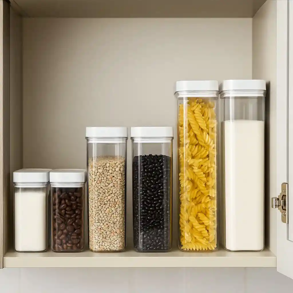Este organizador de alimentos es perfecto para mantener tu comida seca y segura, sus tapas herméticas de fácil bloqueo te permiten sellar el recipiente y proteger tus alimentos. Es ideal para granos, azúcar, café, arroz, frutos secos, dulces, entre otros. Hechos en polipropileno+ poliestireno, sin BPA, de grado alimenticio. 📐 Especificaciones técnicas: 2 contenedores de 1,6 litros (11 x 6,5 x 29,5 cm) 2 contenedores de 1,2 litro (11x 6,5 x 22,5 cm) 2 contenedores de 0,7 litros (11 x 6,5 x 14,5 cm) Material: Plástico transparente, libre de BPA Tapas: Blancas, con cierre hermético de presión No es apto para lavavajillas El precio corresponde solo al set de 6 contenedores. Alimentos no incluidos.