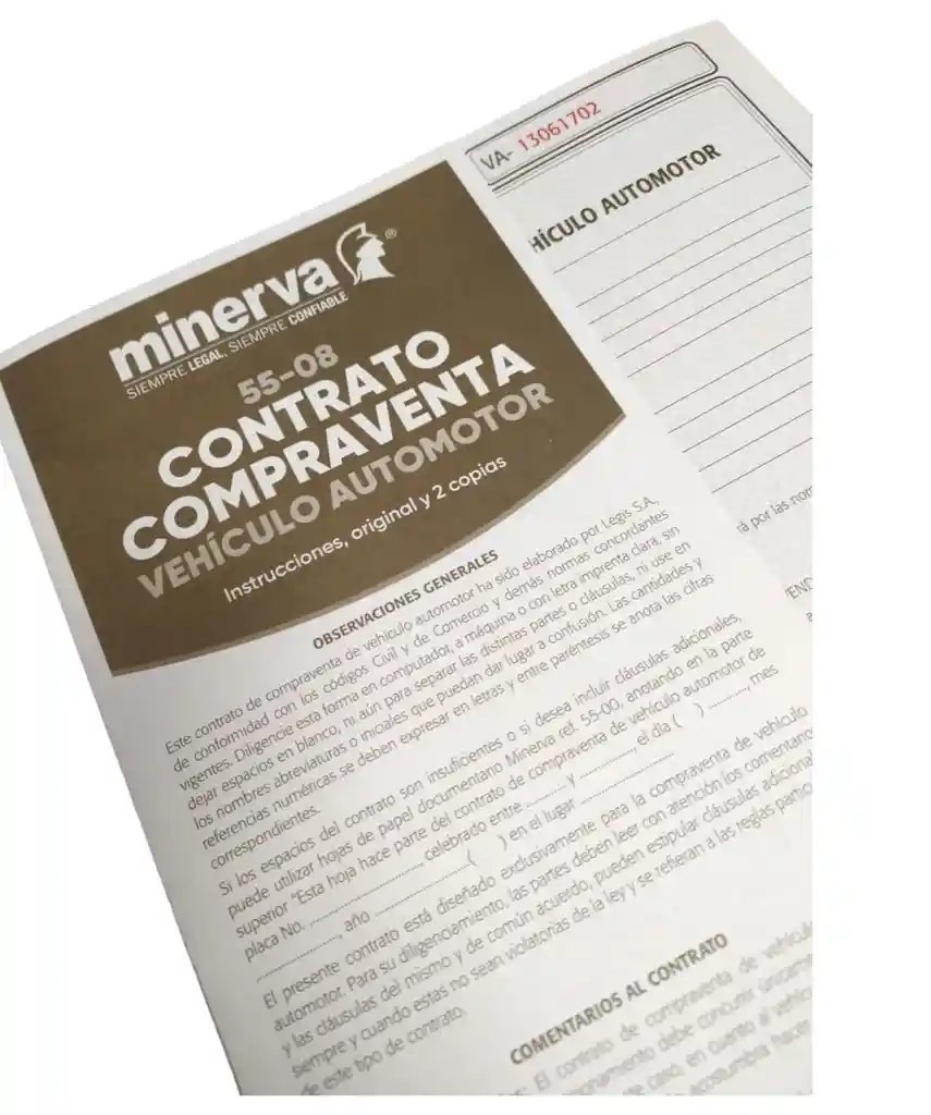Contrato de Compraventa de Vehiculos Automotor Contiene: Instrucciones, Original y 2 Copias