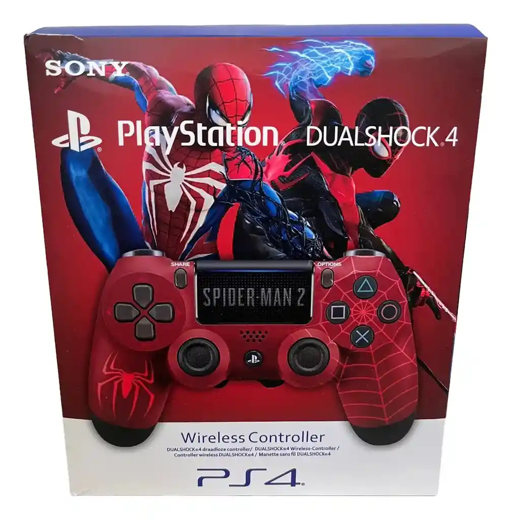 Control Play 4 Diseño Hombre Araña Control preciso Este mando combina funciones revolucionarias mientras conserva precisión, comodidad y exactitud en cada movimiento. Gracias a su ergonomía especialmente pensada para la posición de tu mano, puedes pasar horas jugando con total confort. Transmite de forma inmediata Comparte tus triunfos y logros con tus amistades en las redes sociales más populares con solo tocar el botón SHARE. Nuevas ideas Guía, haz gestos o dibuja con la almohadilla táctil. Su ubicación en la parte frontal del controlador dará más libertad a tu forma de jugar. Juego personalizado Cuatro luces LED de color ofrecen una forma más sencilla de identificar a los jugadores y visualizar información de juego útil, como cuando un personaje sufre daños serios. Escucha cada detalle Disfruta del sonido de alta fidelidad con el controlador y chatea con el parlante mono incorporado y la toma para audífonos. Mayor comodidad y realismo Te permite jugar sin necesidad de que haya cables de por medio. Está pensado no solamente para controlar mejor tus videojuegos, sino también para aumentar su realismo y experiencia.