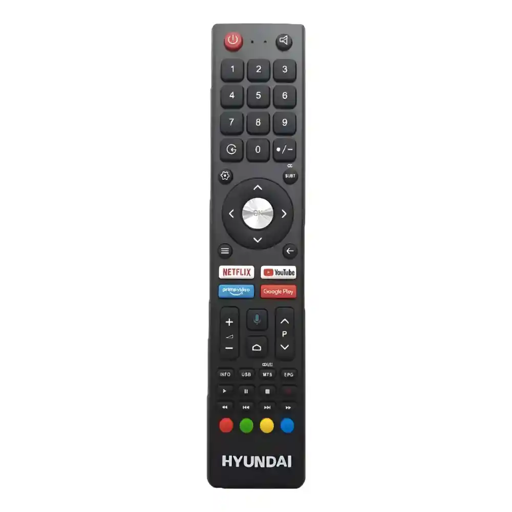 Este mando a distancia es compatible con varios modelos de Smart TV de HYUNDAI. Si tu mando es igual o similar al modelo de la foto, funcionará perfectamente en tu televisor. Modelos compatibles con Compatible con: HYLED4321AiM2011001168 HYLED5520A4KM HYLED5015A4KM Hyled5806a4km HYLED3248AiM2107010683 Hyled6507a4km hyled425aim hyled4022AiM Características: -Control nuevo y genérico de excelente calidad -Material Plástico -Producto 100% funcional. -Medida del control: 12 de Largo x 4.5 de ancho