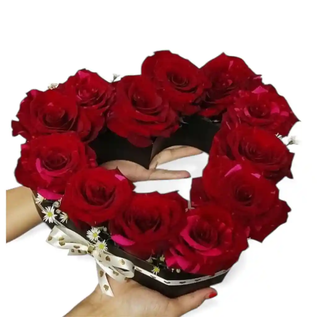 Arreglo elaborado en un corazón hueco con rosas y aster
