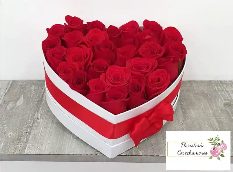 Caja de corazón x 24 rosas rojas