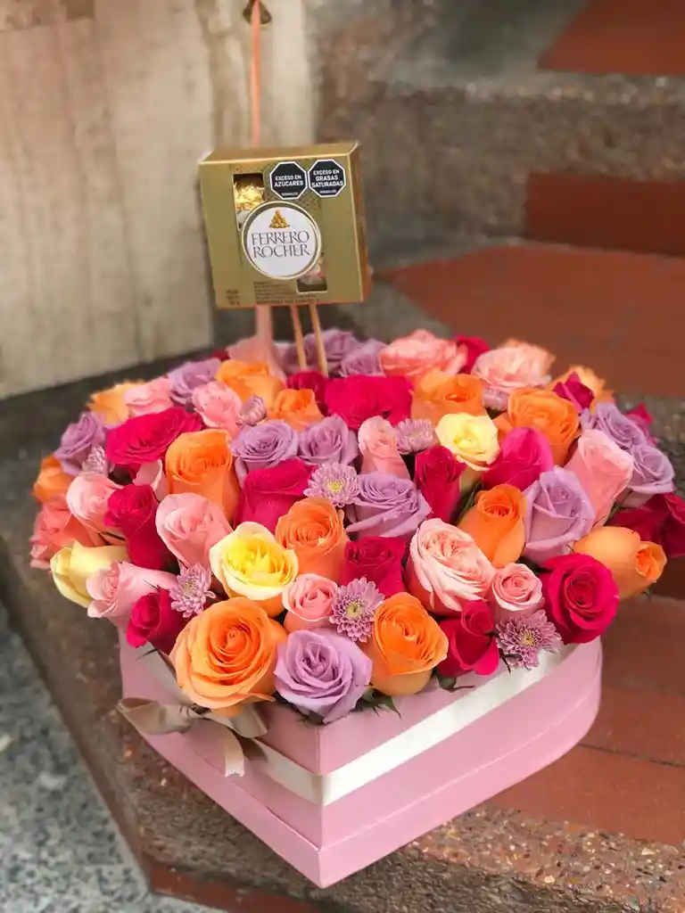 -30 unidades de rosas de colores -corazón de cartón duro -cinta de color de su preferencia -Decoración -tarjeta