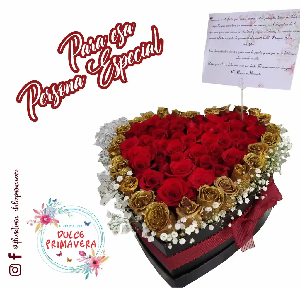 Corazón Dorado 60 Rosas