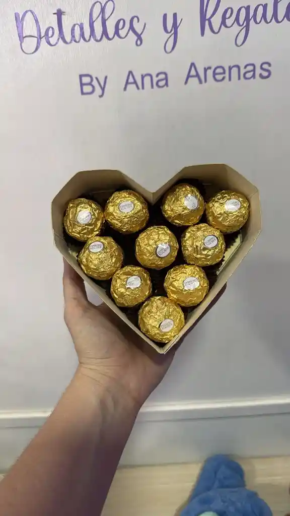 Corazón Económica Con Ferreros Colores de caja de acuerdo a disponibilidad (Rosada, dorada o blanca)