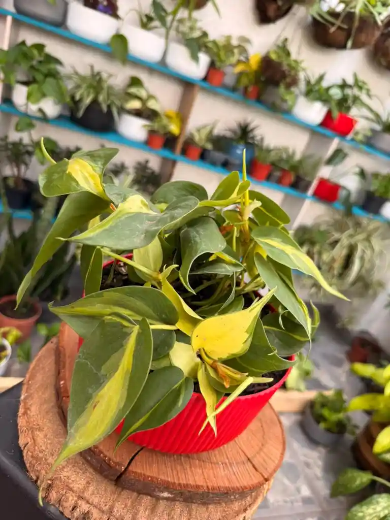 Una popular planta de interior trepadora con atractivas hojas en forma de corazón y patrones únicos de color.