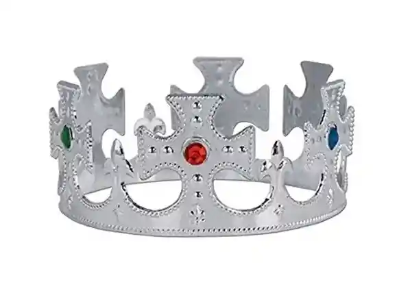 Corona Rey Flexible Ajustable Plateada Y Piedras Hora Loca Carnaval Halloween. Medidas. 52 cm largo X 7 cm alto